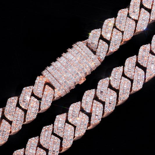 10k Rose Gold Round & Baguette Diamond Cuban Link Chain