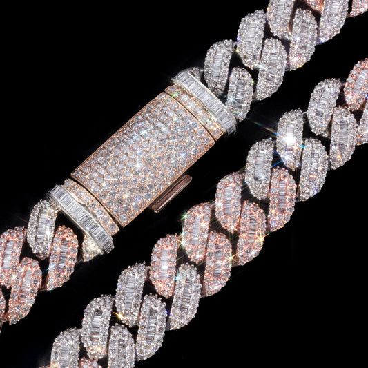 10k Two-Tone Rose & White Gold Round & Baguette Diamond Cuban Link Chain