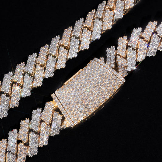 14k Two-Tone Yellow & White Gold Diamond Prong Cuban Link Chain