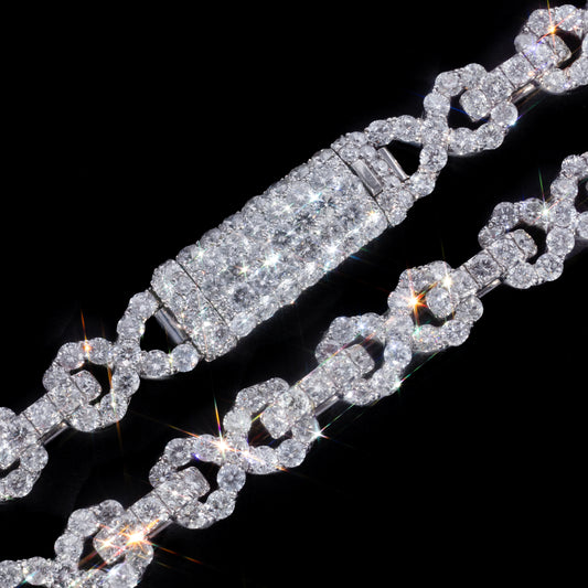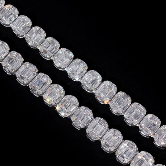 14k White Gold Oval Shaped Baguette and Round Diamond Chain