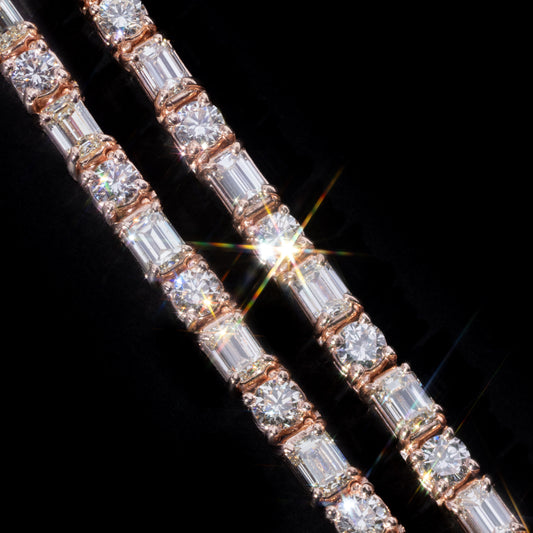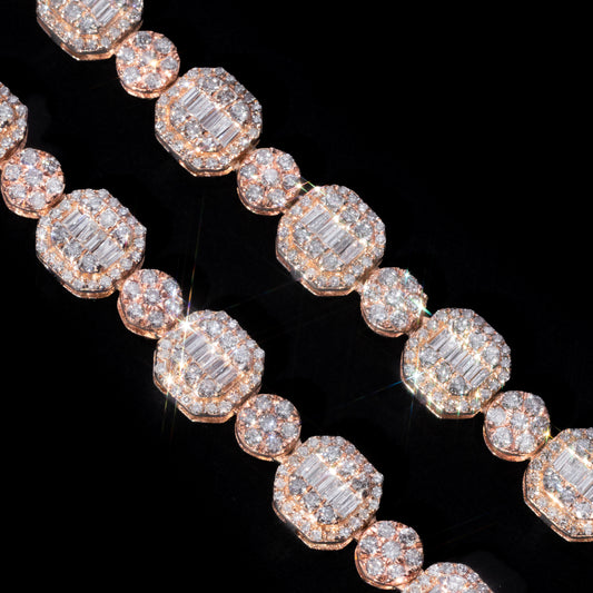 10k Rose Gold Round & Baguette Diamond Cuban Link Chain