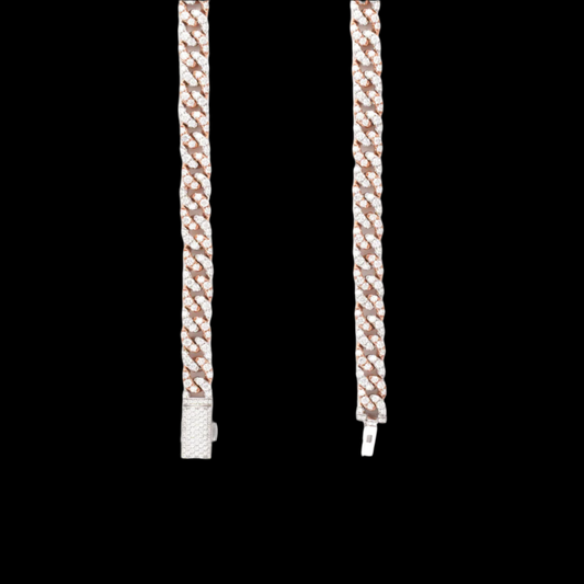 14kt White and Rose 8mm Cuban Link Chain with Diamonds